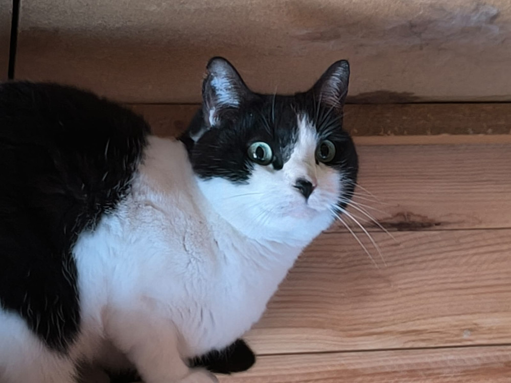 Maria ist eine schüchterne und ruhige Katze. Bei uns lässt sie sich nicht anfassen, aber in einem ruhigeren Haus könnte sie sich entspannen und ihr Verhalten ändern.