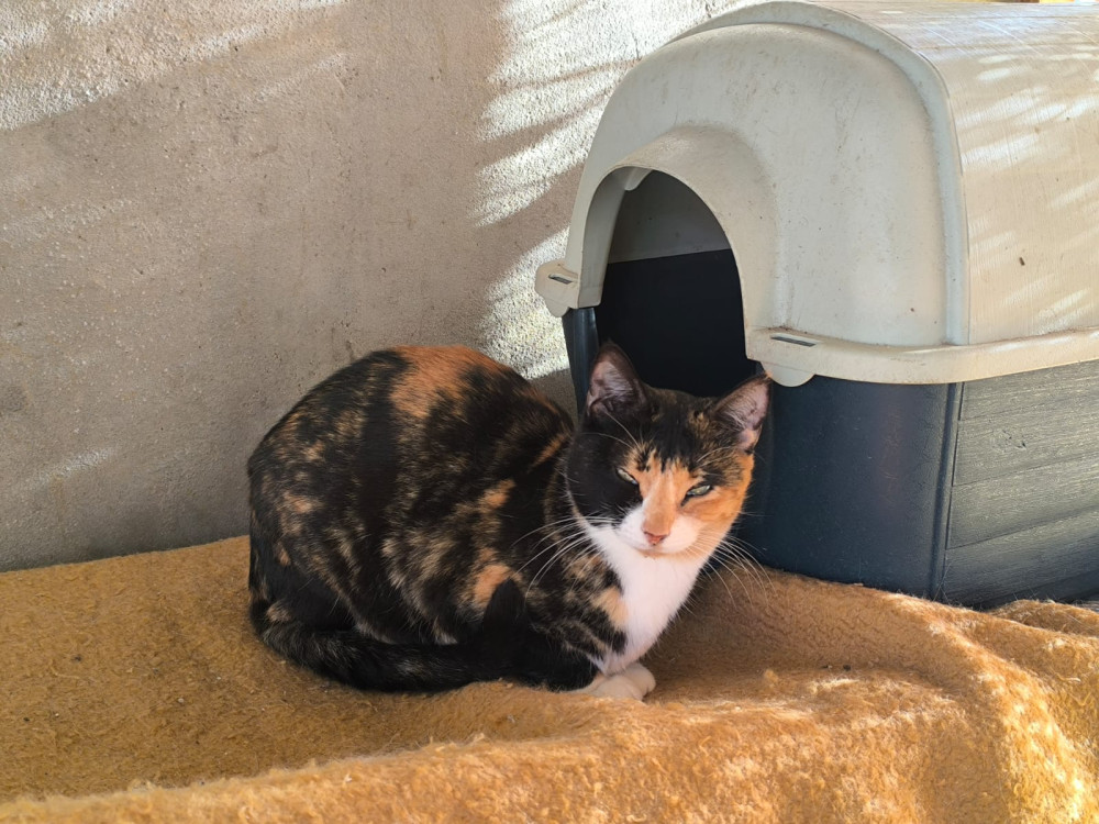 Bimba was abandoned by her family. A private animal rights activist picked her up off the street and took her in. The woman has a big heart, but unfortunately not a big enough flat. When the flood of cats became too much, she asked Chantal for help. So Bimba and three of her friends became residents of the finca. She was four years old at the time. She has now been at the shelter for over four years. She gets on very well with the cats at the finca and has made new friends there. She finds it a little difficult with the two-legged creatures and will only let them stroke her when she is sitting in her bed. But in a patient family, she would certainly gain confidence at some point and learn to trust people more.