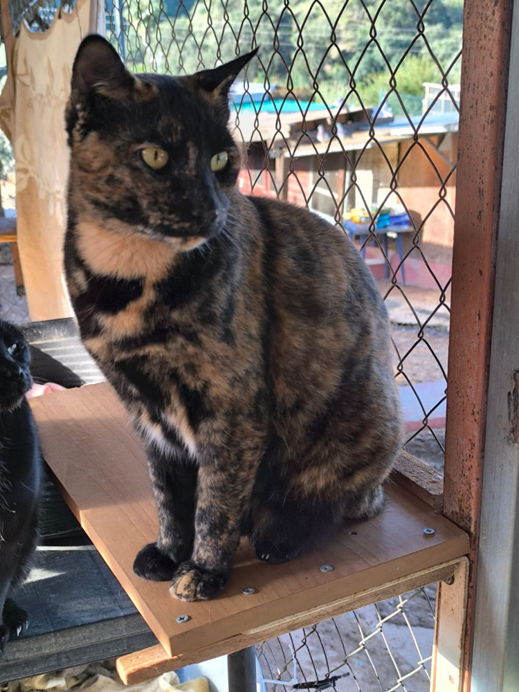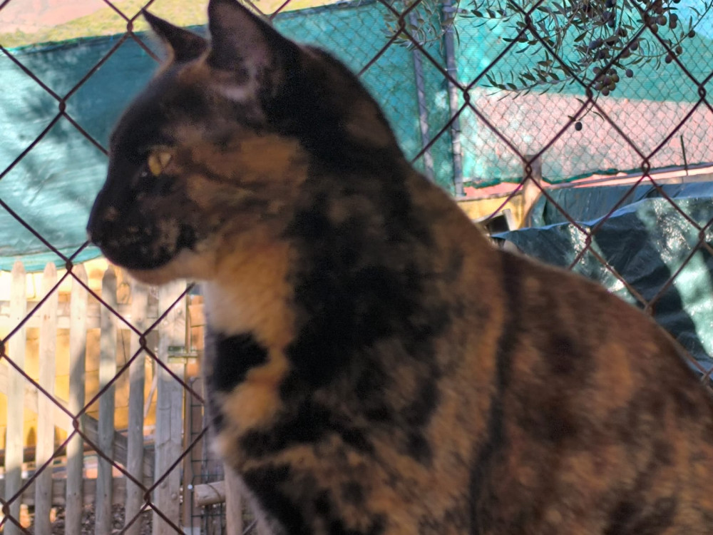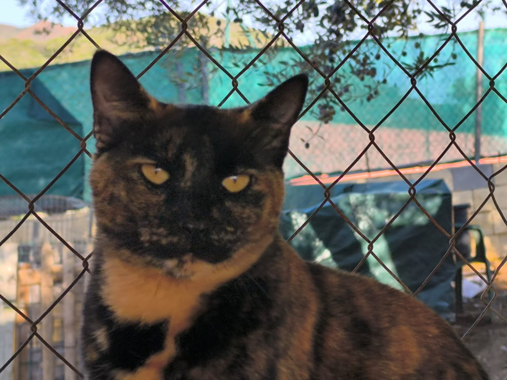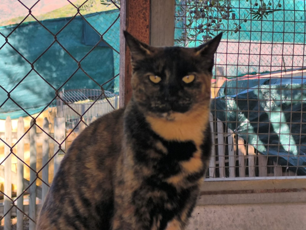Mona y su hermana Mina fueron entregadas a los Aristogatos por su familia. Mina ya ha encontrado un nuevo hogar, pero Mona sigue buscando uno. Es cariñosa, amable, tranquila y compatible con otros gatos; le gustan las personas y los niños.