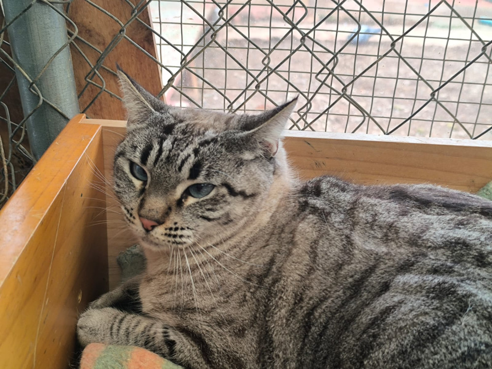 Matilda fue rescatada de la calle. Estaba herida y tuvieron que extraerle quirúrgicamente los perdigones del cuerpo. No es de extrañar que sea un poco tímida con la gente después de estas experiencias. Sin embargo, está haciendo grandes progresos y ya se la puede acariciar. Seguro que ganará más confianza en un hogar. Se lleva muy bien con otros gatos.