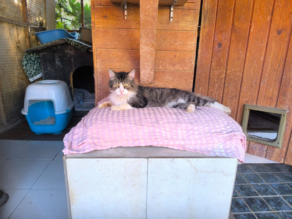 Coco abandoned by his family. Loving, friendly and very good cat, perfect for a family. He is a Forest-Norwegian crossbreed with a very nice coat. Unfortunately he tested positive for feline AIDS, the feline immunodeficiency virus. He had an appointment with the dentist, where he sadly had to have all his teeth removed. However, he has recovered well from the operation and is enjoying his food again!