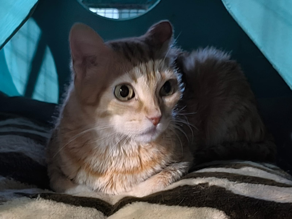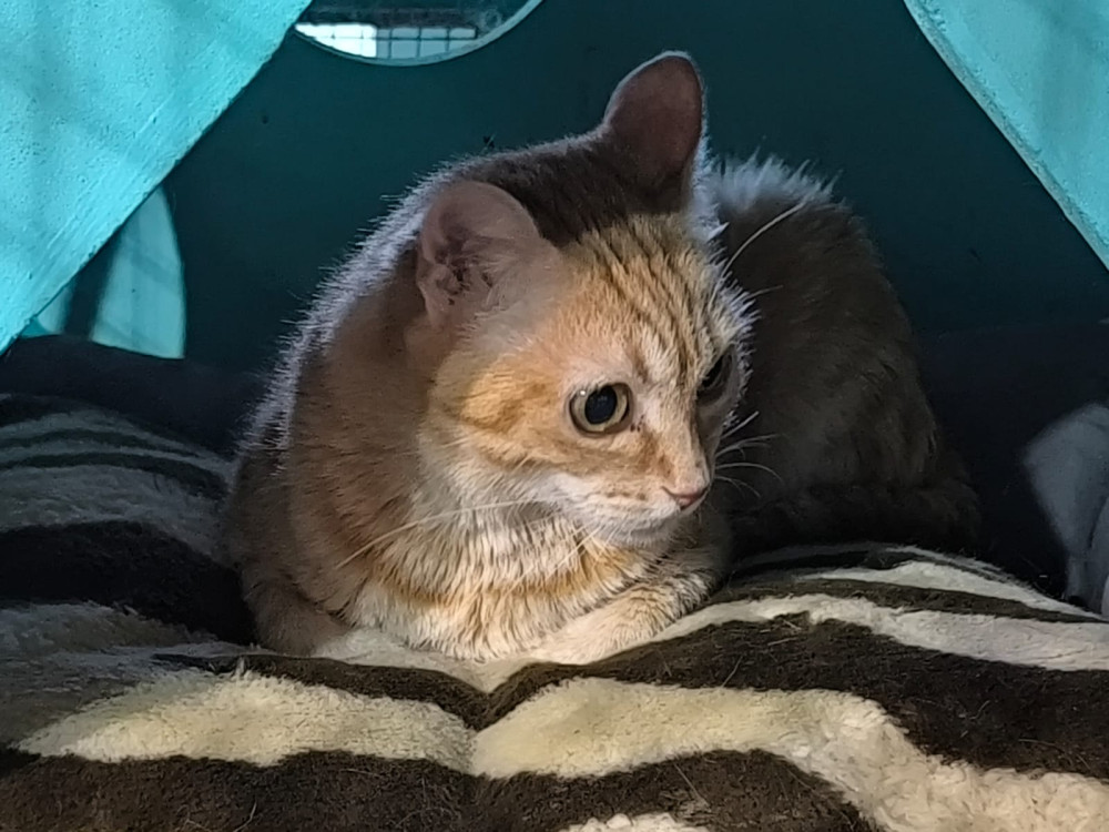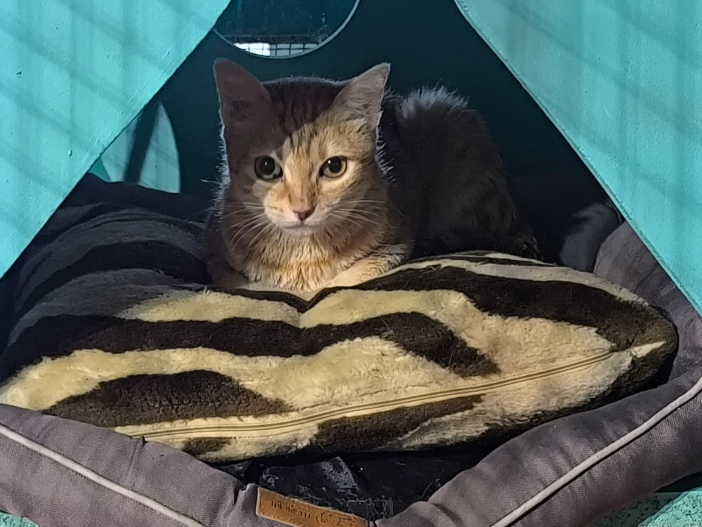Katy a été trouvée dans la rue. Cette très jolie tigresse rousse est une chatte très affectueuse et docile. Elle s'entend bien avec ses colocataires au Centro. Mais elle préférerait tout de même avoir son propre foyer, où elle n'aurait pas à partager les caresses régulières avec autant de pattes de velours. Son plus grand souhait serait de trouver une famille où petits et grands s'occupent d'elle.