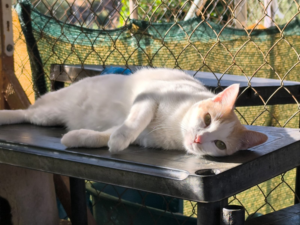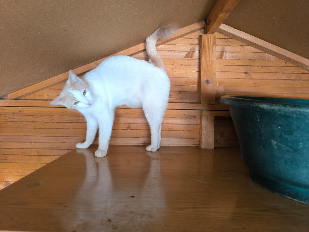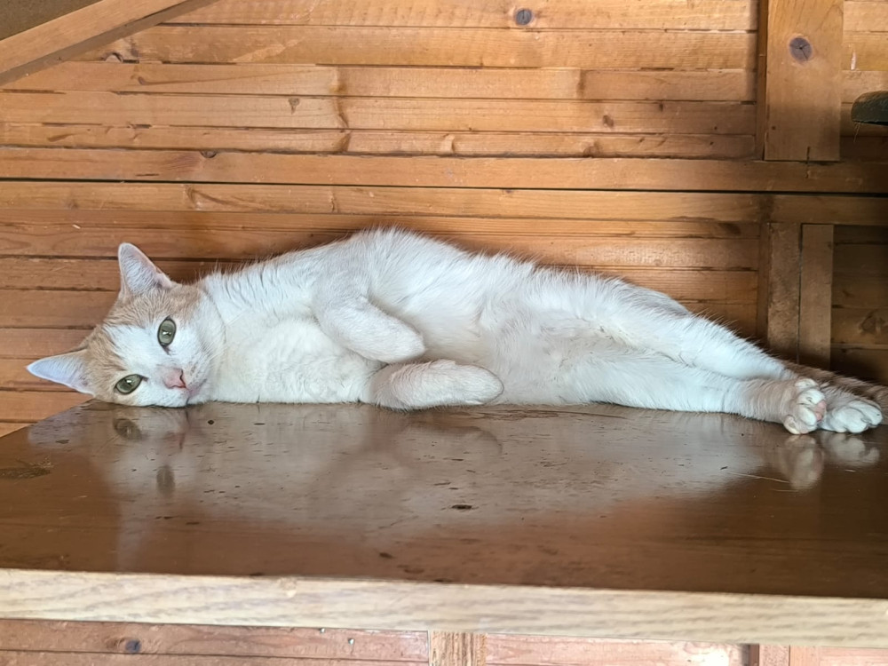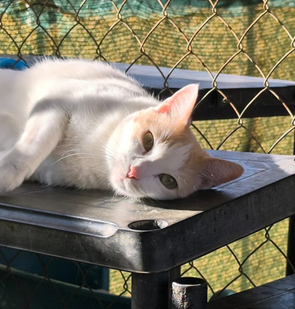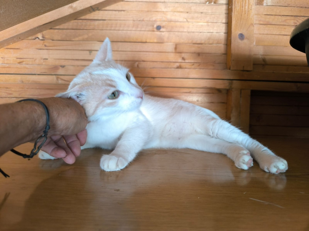 Kiwi was given to the Aristocats by his family, along with his friend Honey. He is a friendly little white kitten with a hint of cinnamon who gets on very well with his friend Honey. He loves being stroked and is affectionate and good with young and old alike.
