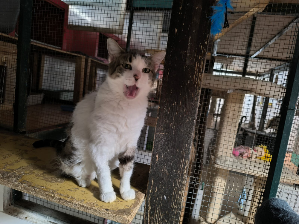 Estefanía fue abandonada por su familia en la perrera municipal. Como es muy cariñosa, buena y simpática, se le pidió a Chantal que le reservara una plaza en Aristochats para aumentar sus posibilidades de ser adoptada. Después de esperar un poco, finalmente pudo mudarse y demostrar que sería una compañera de piso estupenda. Ha resultado ser una gata muy cariñosa, ideal para una familia con niños en la que también haya otros gatos.