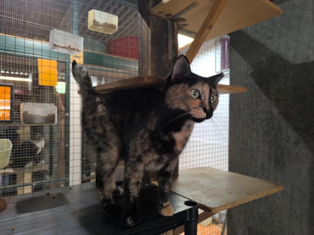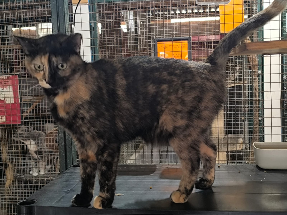 We would like to introduce you to Paloma, who comes from a family with her sister Nuria that had far too many cats and even more problems. They are now safe with the Aristocats. Paloma is a beautiful tortoiseshell cat, affectionate and cuddly. She would feel very comfortable in a family with children, as she loves attention and enjoys being stroked. She is also happy to live with other cats, as she is used to their company from her previous life and now in her cage, and gets on well with them.