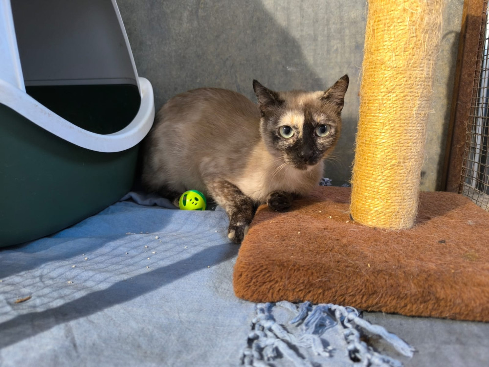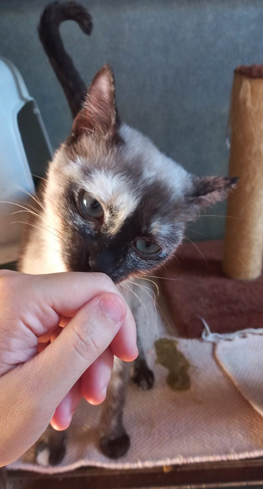 Kity es una gata cariñosa y simpática, tranquila y a la que le encanta que la acaricien. Se lleva bien con sus compañeros de la jaula. Sin embargo, Kity preferiría tener una nueva familia con la que pudiera irse a vivir lo antes posible.