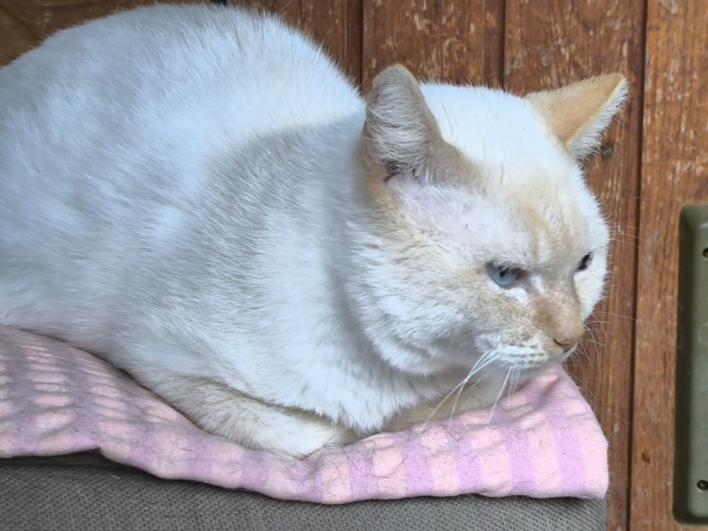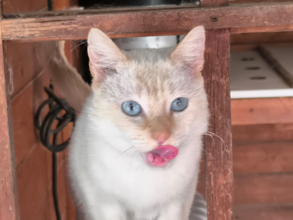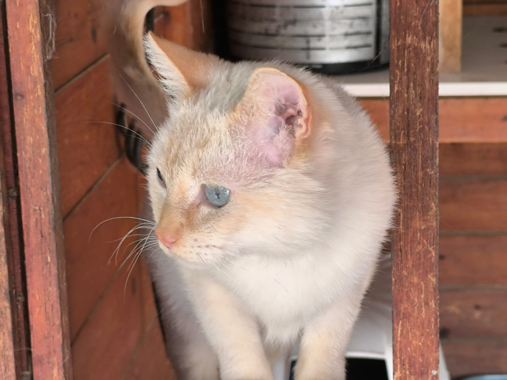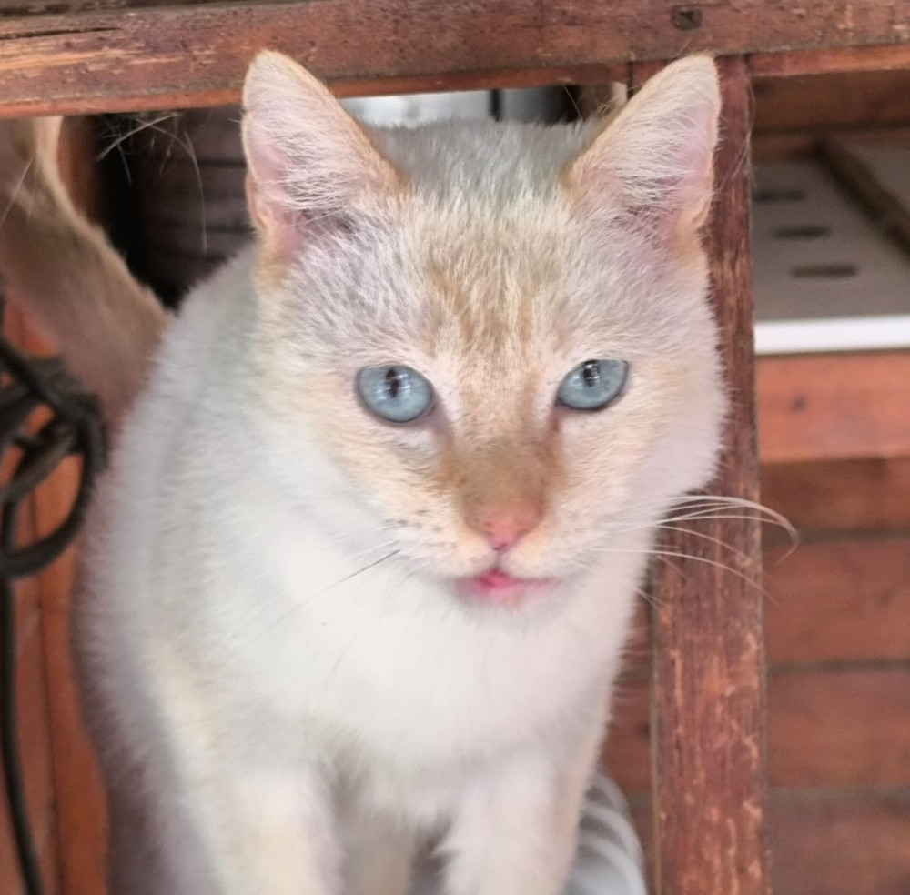 Steve was found on the street. His teeth were in terrible condition. He must have been in terrible pain. After dental surgery, he still had four teeth left, which he now uses to eat his gourmet mousse painlessly and with pleasure. Steve is very sweet and friendly towards us humans and has also made good friends among the other cats in the enclosure. His best buddy is Mango, the red tabby. Unfortunately he tested positive for feline AIDS, the feline immunodeficiency virus, but at the moment he is in perfect health!