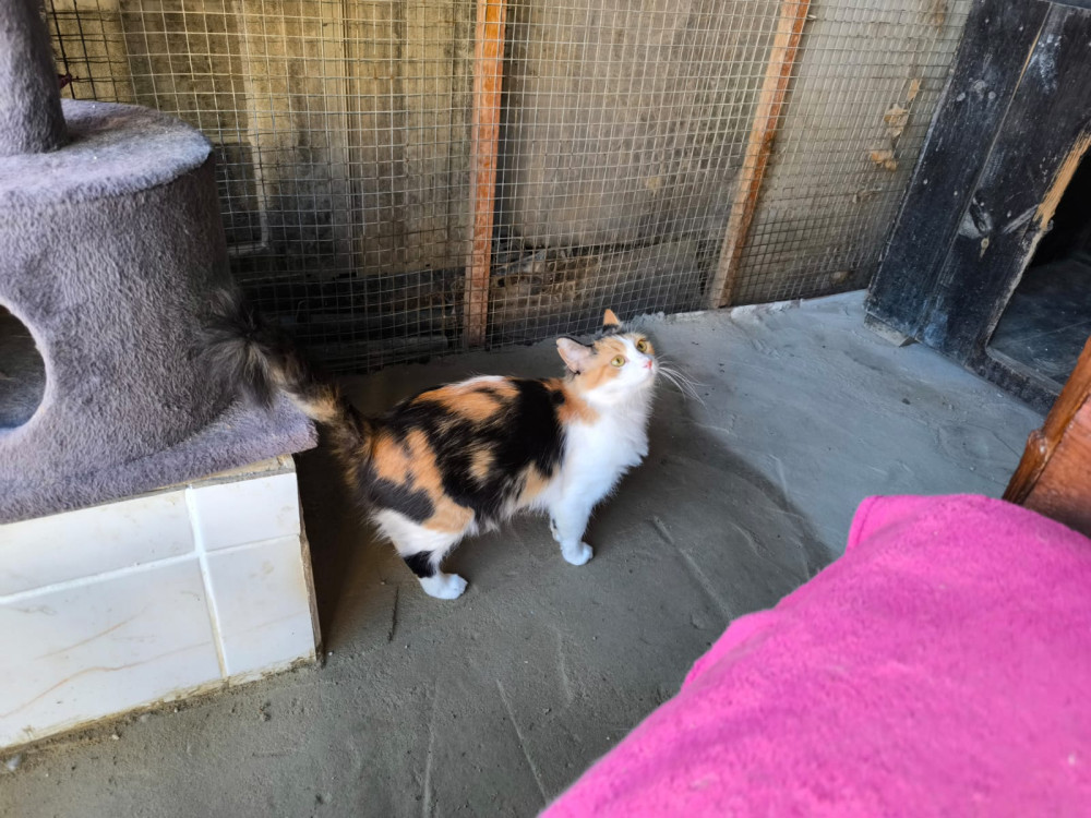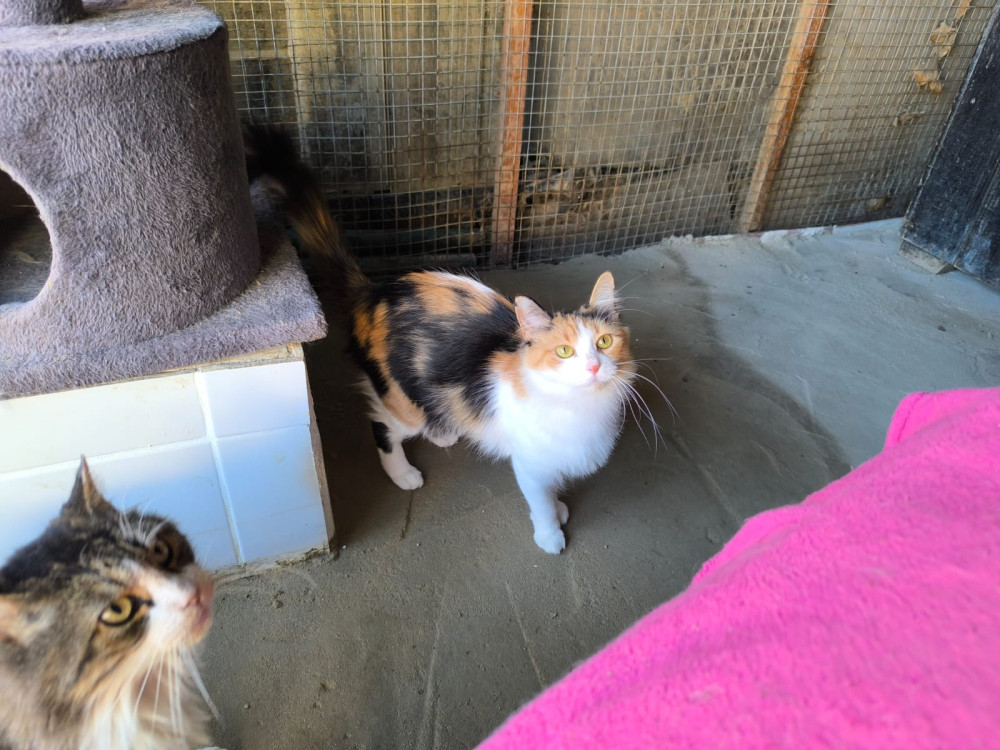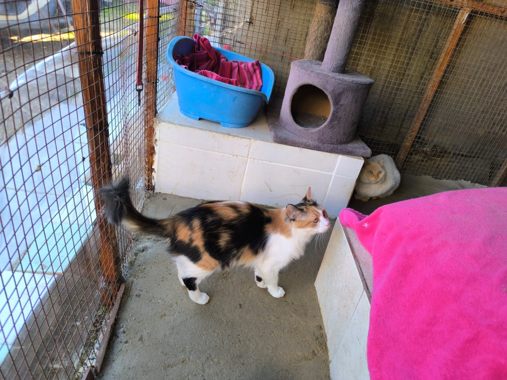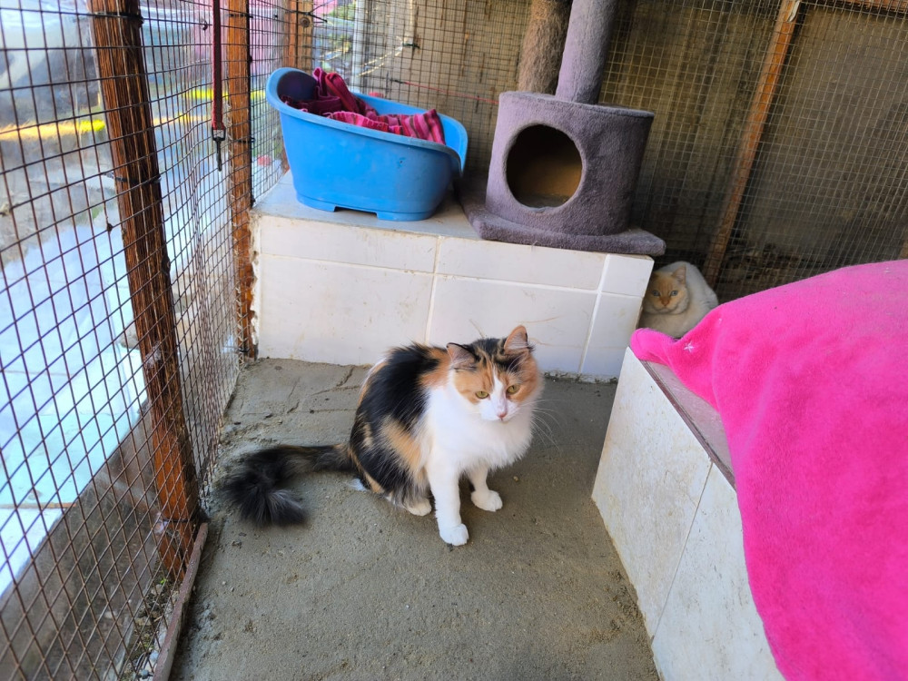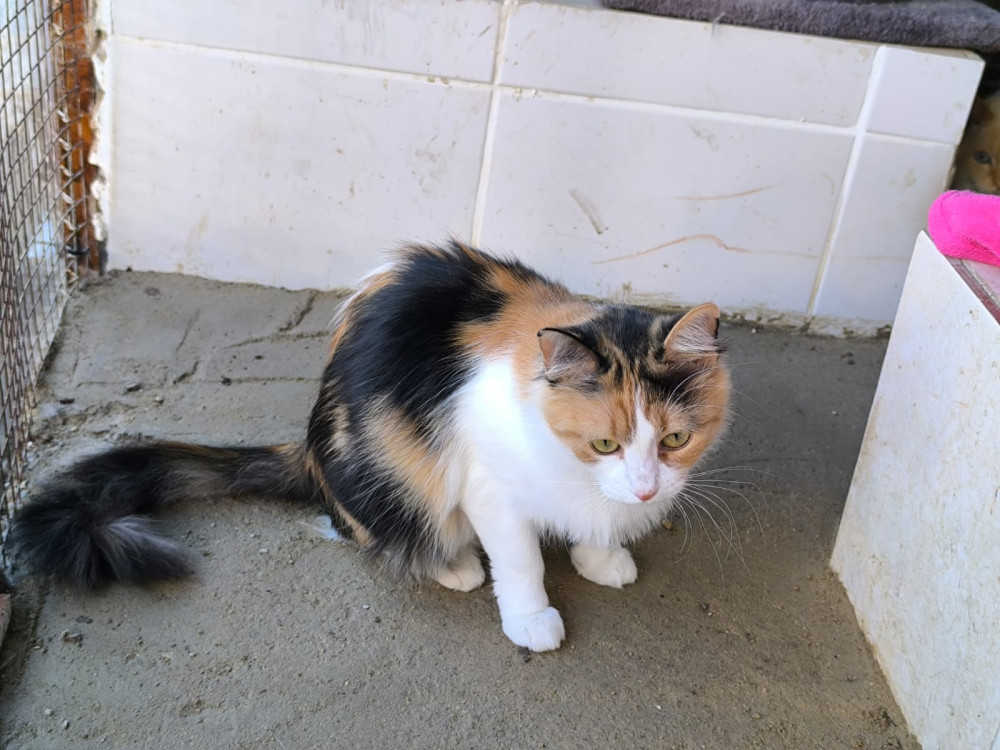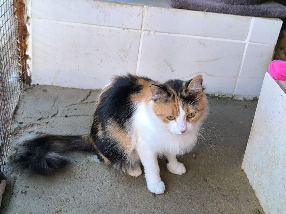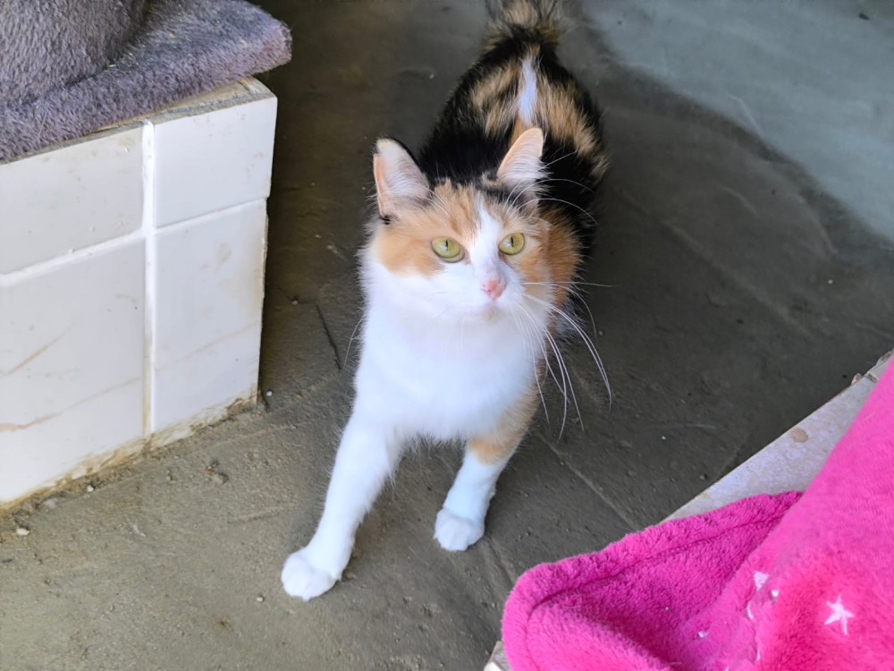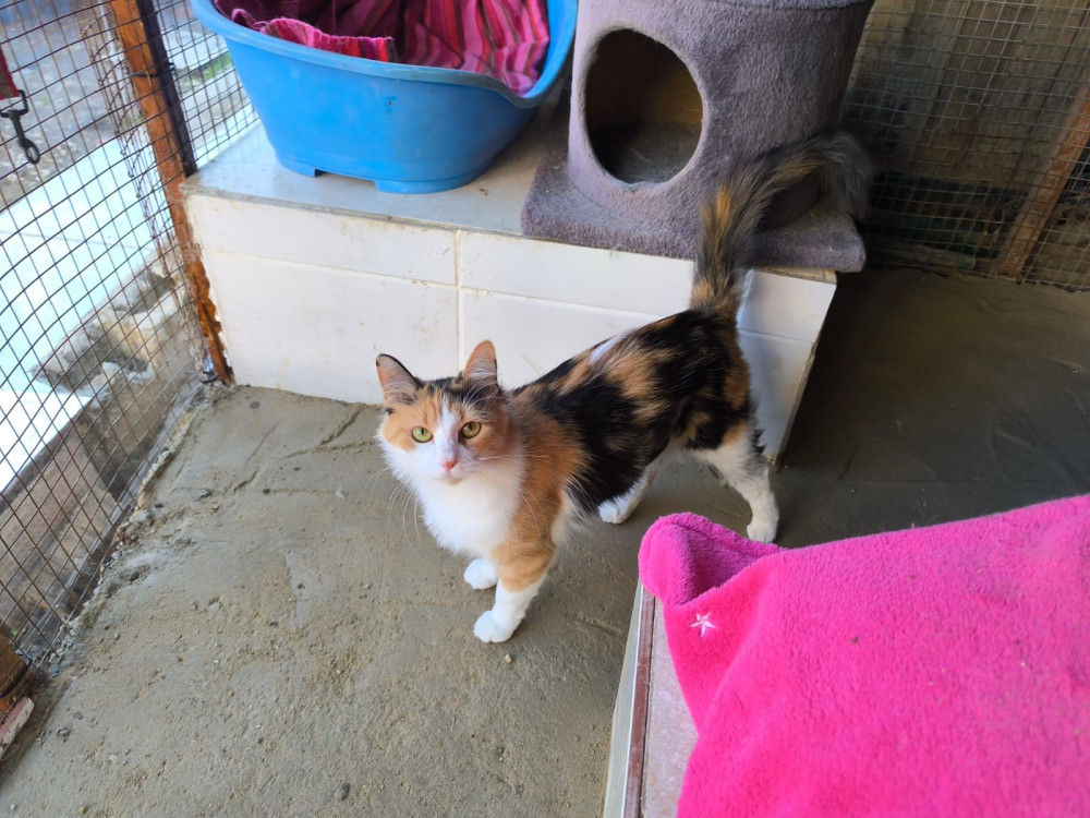 Juanita est une magnifique chatte tricolore porte-bonheur, dont le pelage mi-long est vraiment particulier. Elle est très affectueuse, câline et amicale. Elle est idéale pour une famille et nous pouvons même l'imaginer avec des enfants.