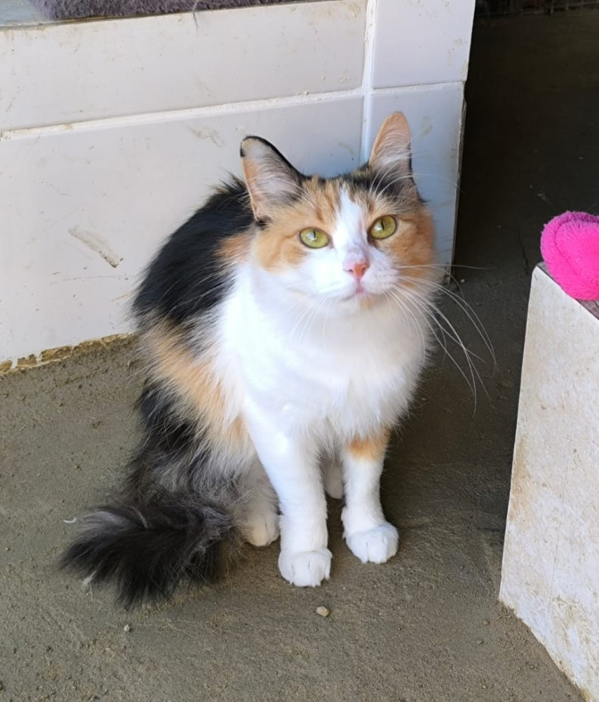Juanita es una preciosa gata tricolor muy buena, con un pelo semi largo realmente especial. Es muy cariñosa, mimosona y simpática. Es ideal para una familia, con ninos tambien. Juanita es positiva en Inmunodeficiencia felina pero por el momento es de buen salud!