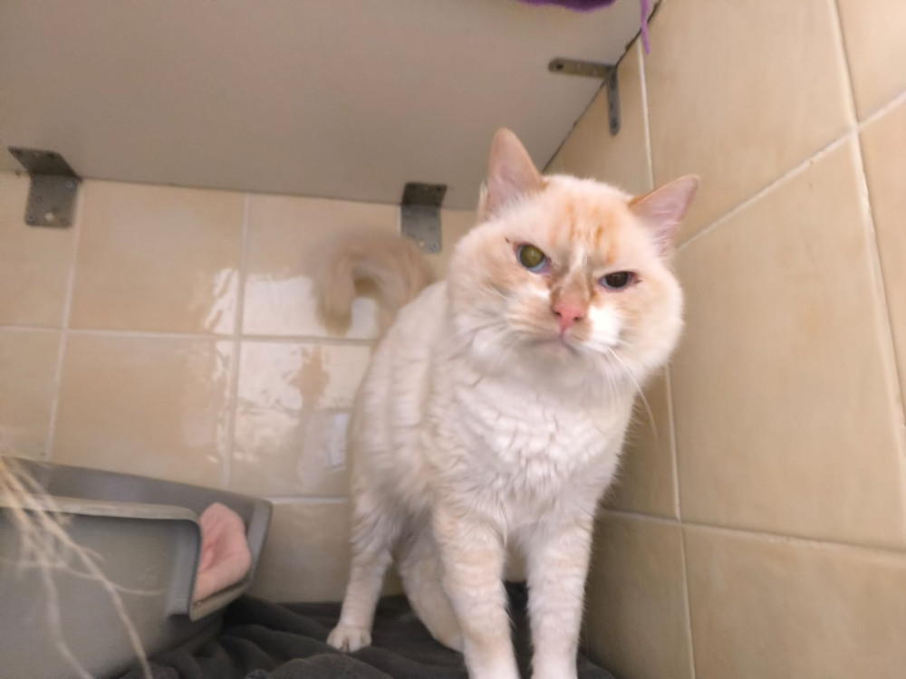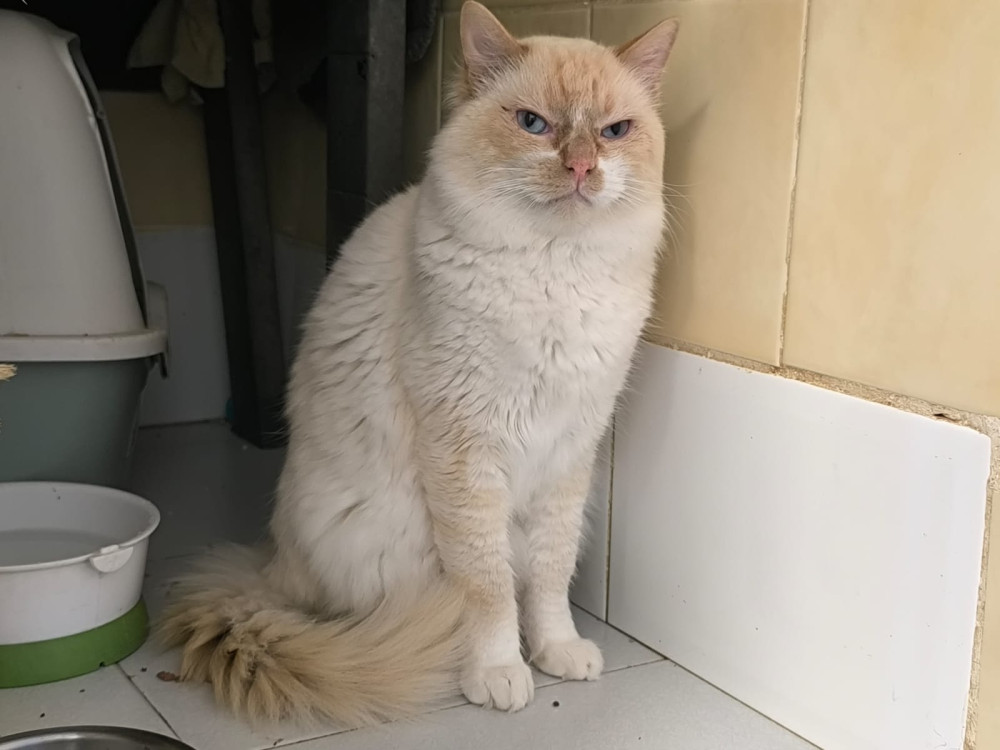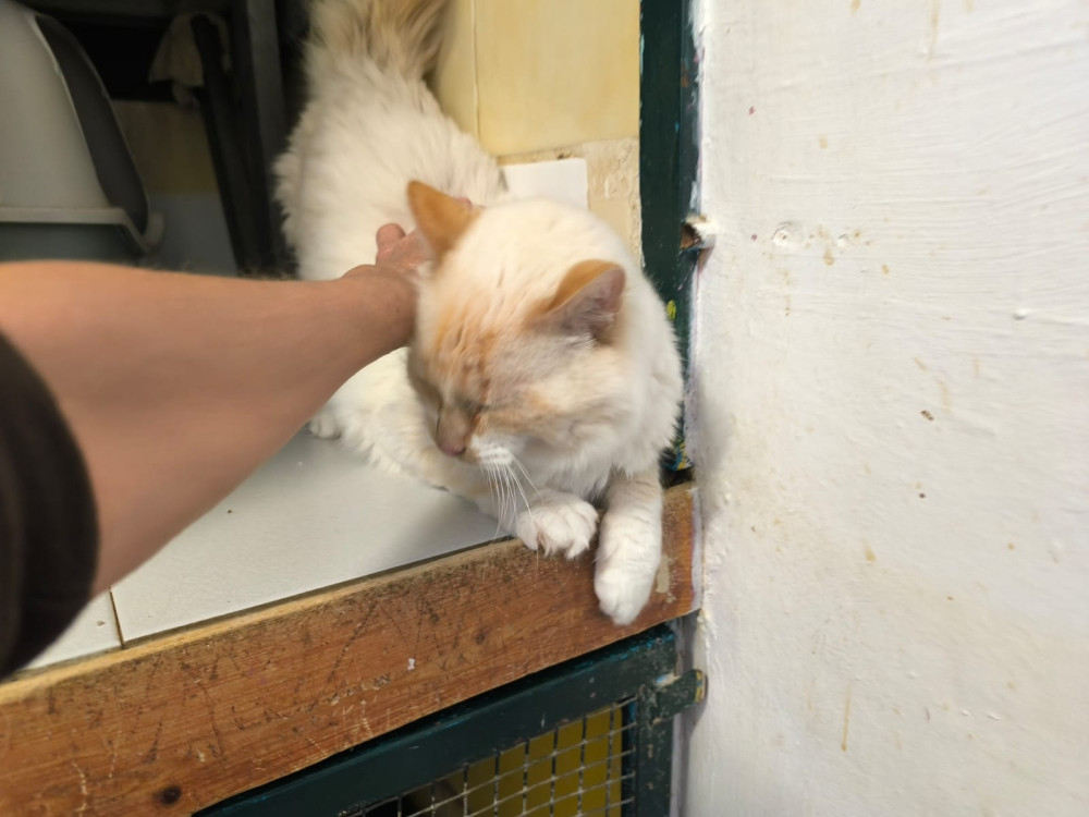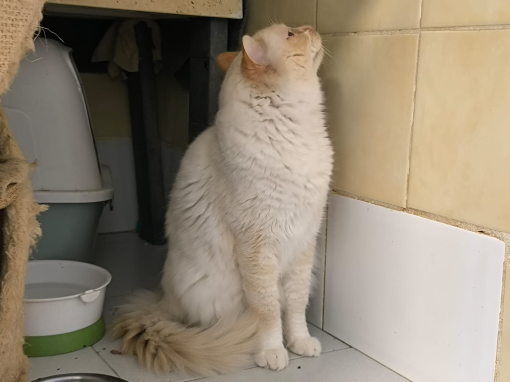 Zimba fue llevado a Aristocats junto con su amiga Nala. Este cariñoso cruce de Maine Coon adora que lo acaricien y le encantaría pasar el tiempo tumbado a tu lado en el sofá y mimándose. Es un gato ideal para una familia. Desgraciadamente, tras su llegada al refugio se descubrió que era positivo en leucosis, pero actualmente goza de buena salud.