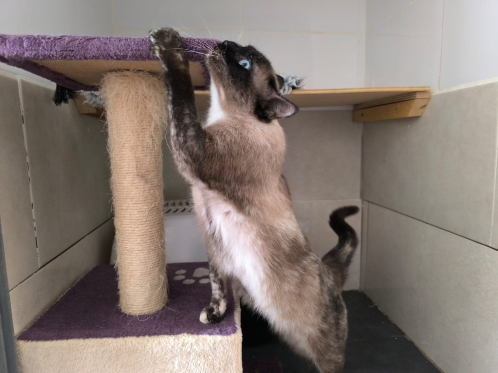 Nala was brought to the Aristochats together with her friend Zimba. Like her friend, this sweet Siamese mix lady loves to be petted and would love to spend her time lying next to you on the sofa and cuddling. She is an ideal companion for a family, and we hope that she will soon be able to pack her bags and move in with you.